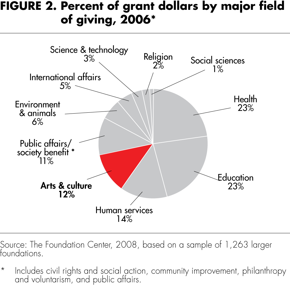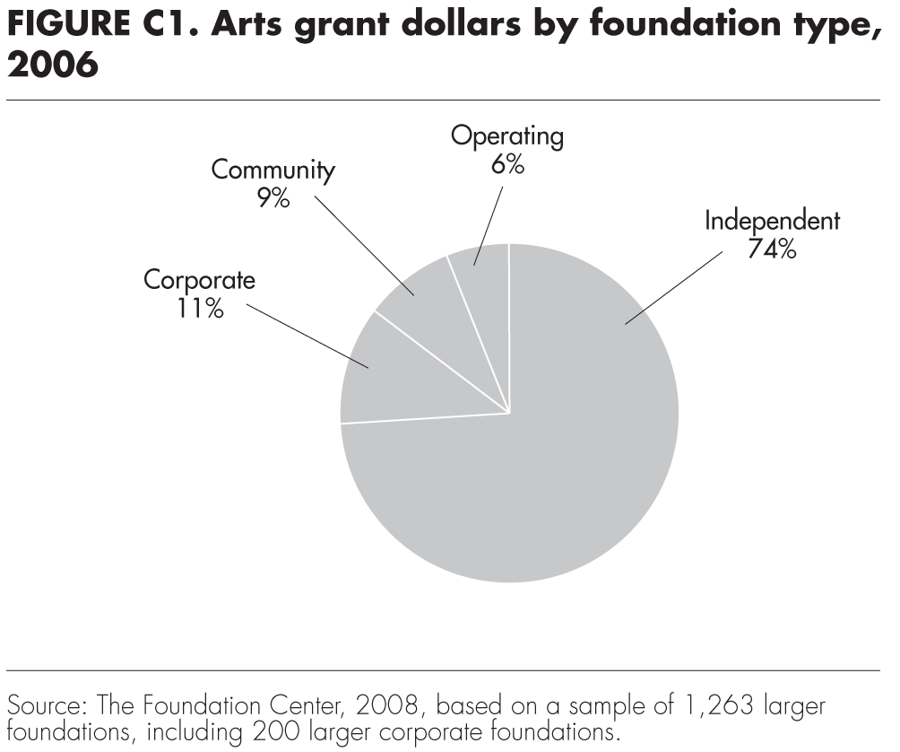 - 1. Source of the data. The original research upon which this report is based was conducted by the Foundation Center. Specifically, the source for data was the Foundation Center’s Foundation Giving Trends: Update on Funding Priorities (2008) report and the grants sample database. The data for 2006 include all grants of $10,000 or more awarded by 1,263 of the largest U.S. foundations and reported to the Foundation Center between June 2006 and July 2007. Grants were awarded primarily in 2006. These grants represented half of total grant dollars awarded by the more than 72,000 active U.S. independent, corporate, and community foundations that the Foundation Center tracks. (The sample captures roughly half of all foundation giving for arts and culture.) For community foundations, only discretionary and donor-advised grants were included. Grants to individuals were not included.