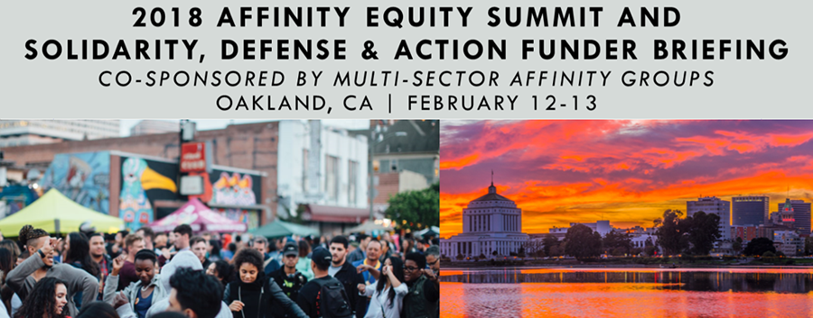 At a time where there is a critical need for unity and the energy of collaboration, affinity groups and funders from across the US will convene on February 12th and 13th for the 2018 Affinity Equity Summit and Solidarity, Defense and Action Funder Briefing, at the Scottish Rite Center in Oakland, California.