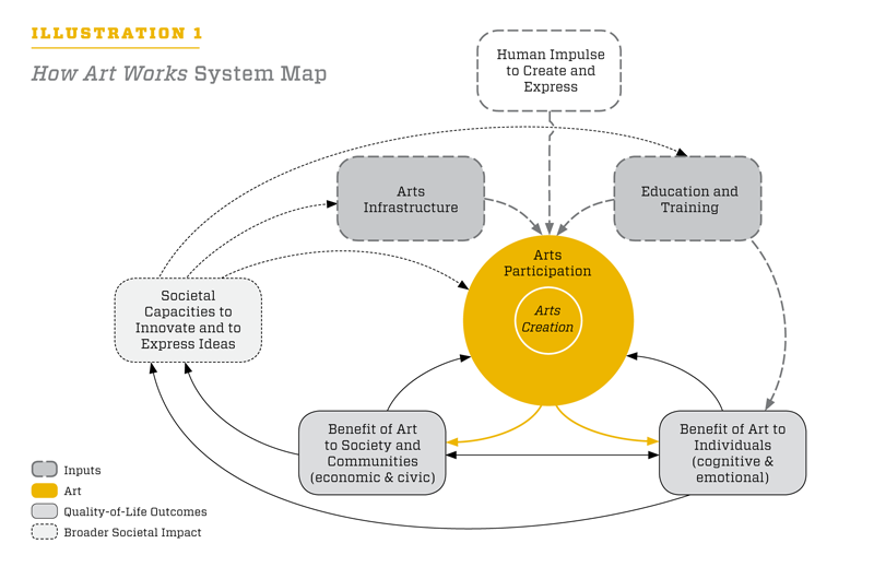 The new report How Art Works: The National Endowment for the Arts' Five-Year Research Agenda, with a System Map and Measurement Model is now available online and was discussed in a forum held at American University on September 20 (see the live-blogging of the event from Ian David Moss). From the report's preface, by NEA Director of Research & Analysis Sunil Iyengar: