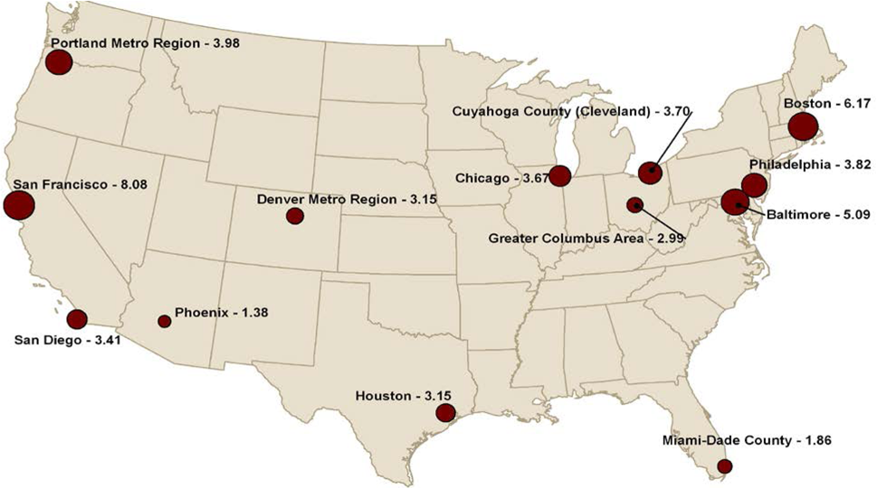 A new report from the University of Chicago’s cultural Policy Center compares the direct public dollars received by organizations and artists in Baltimore, Boston, Chicago, Cleveland, Columbus, Denver, Houston, Miami, Philadelphia, Phoenix, Portland (OR), San Diego, and San Francisco from 2002-2012. Public Funding for Art: Chicago Compared with 12 Peer Regions was authored by Jennifer Novak-Leonard and Patience Baach.